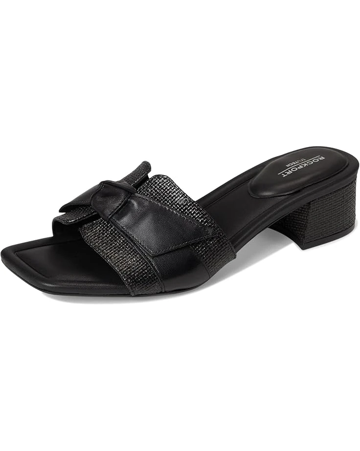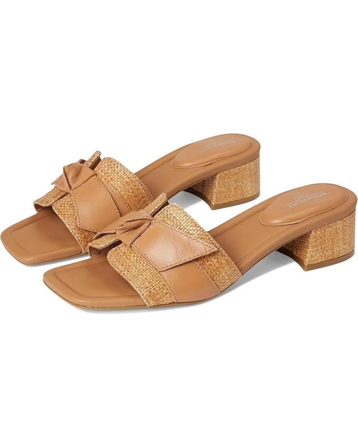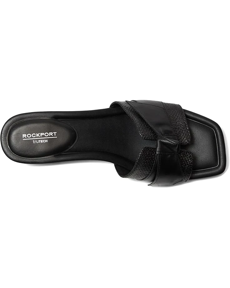 - The Rockport® Carsie dress sandal is an epitome of sophisticated style. It offers a slip-on silhouette and bow detailing on the upper. This sandal will keep you looking chic all-day. Featuring open square toe, Trutech® technology for lightweight shock absorption, block heel, and brand detailing on the footbed.