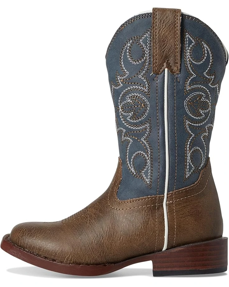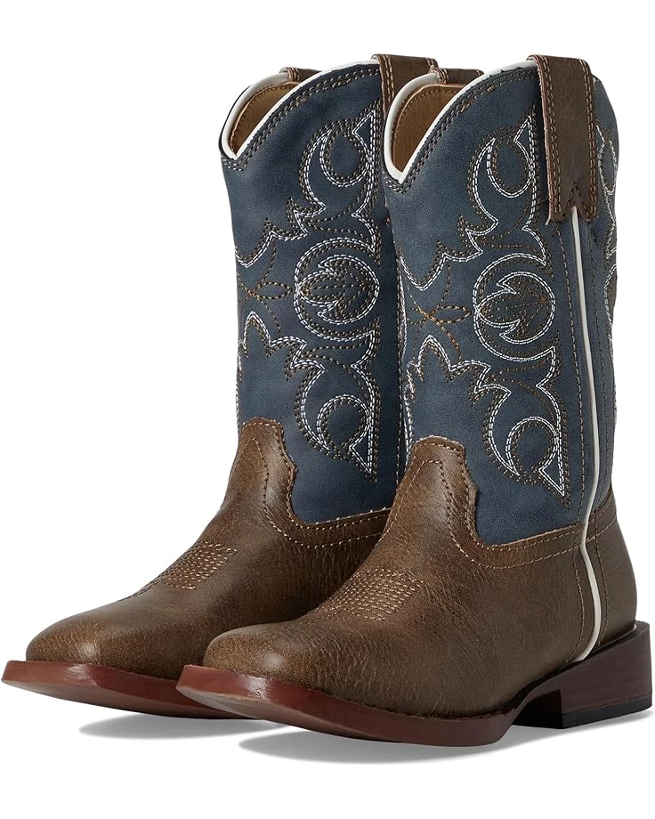- From the playground to the rodeo, these Roper® Kids Ainsley boots let kids step into classic cowboy style while keeping up with all-day play. Crafted from synthetic upper, nylon lining, and rubber insole, this pair of boots features square toe, blue vintage shaft, classic western stitch design on shaft, overlay mule ear pull, and flexible bottom.