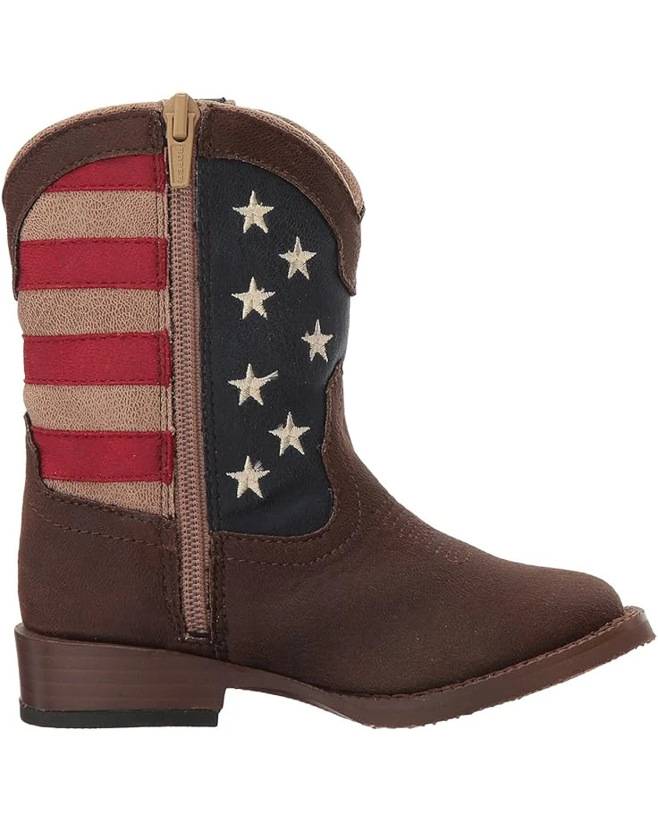 - They’re never too young to be a proud of the red, white, and blue in the Roperยฎ Kids American Patriot cowboy boot!