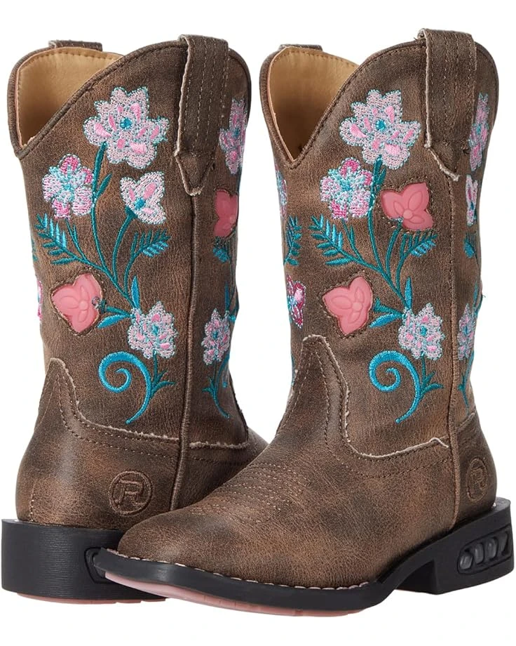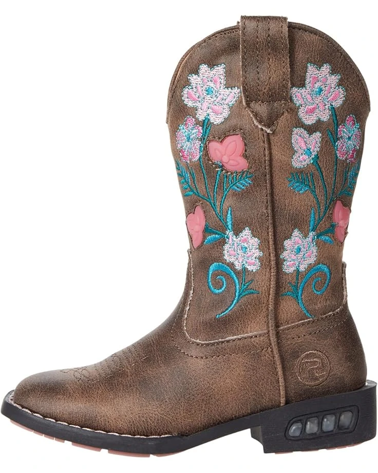 - Wardrobe malfunctions be gone with these Roperยฎ Kids Dazzle Floral Lights boots.