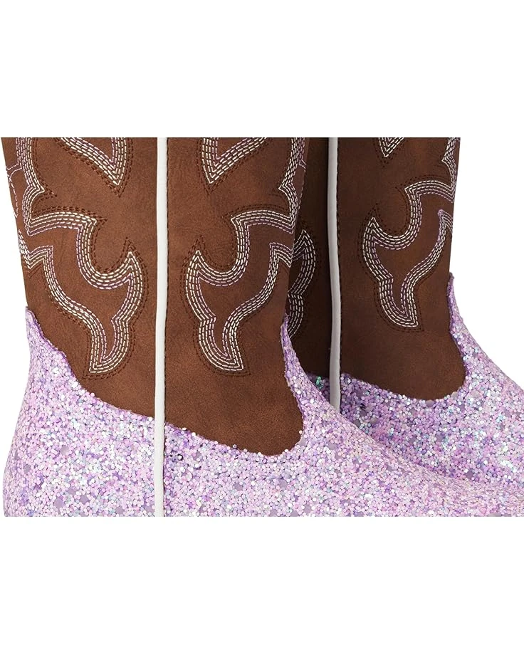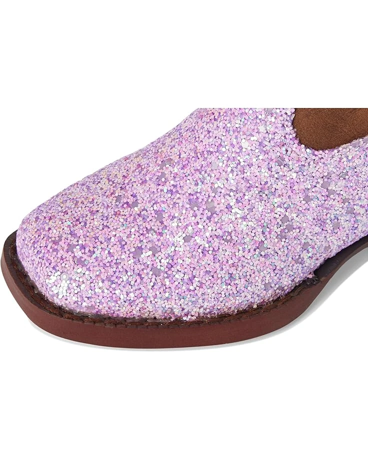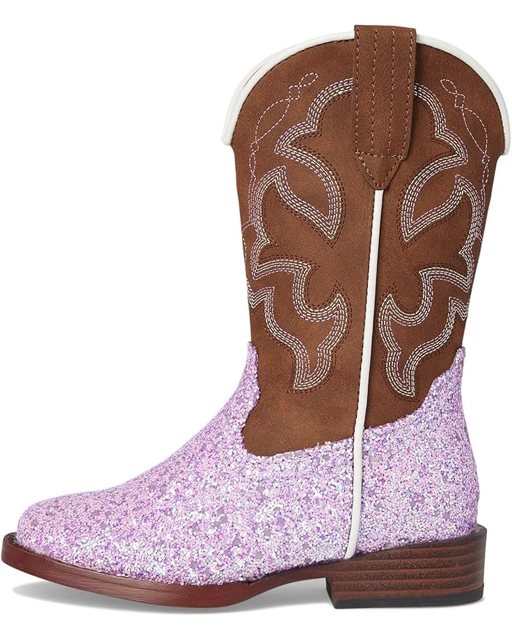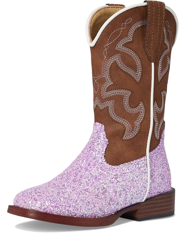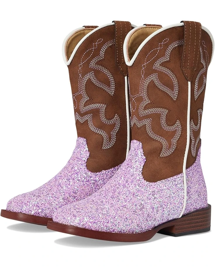 - A glitter-embellished vamp gives the Roperยฎ Kids Glitter Blast Western Boots a stylish and charming look. With overlay mule ear pull tabs, the square toe pair features synthetic upper construction and stacked block heel for added stability.