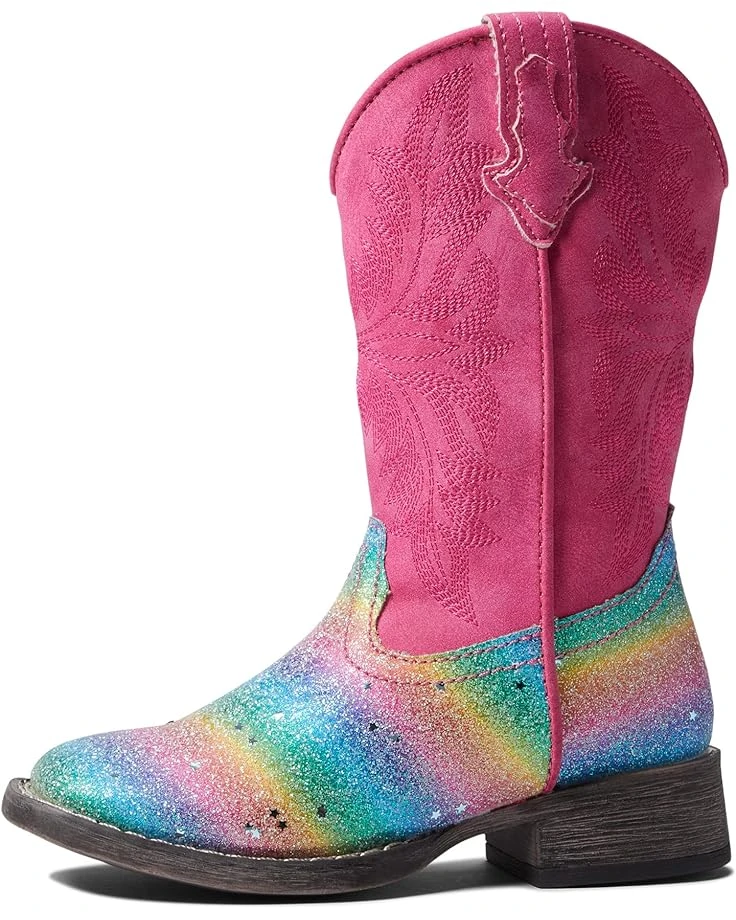 - Fusing with style and comfort, your little one will love the Roper® Kids Glitter Rainbow cowboy inspired boots.