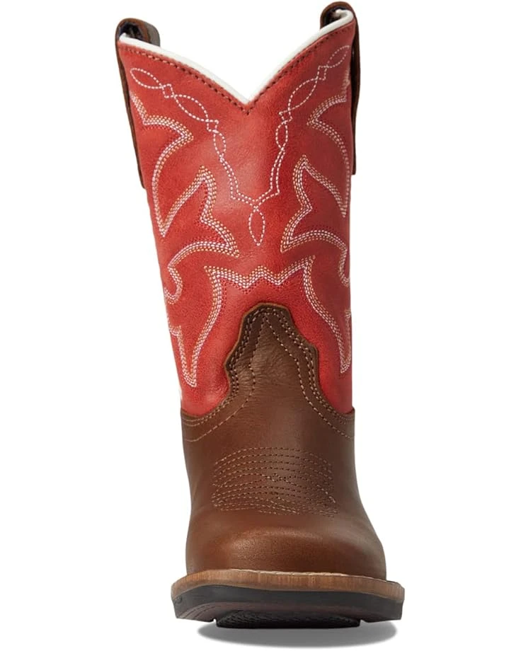 - Square-toe boot is constructed with a synthetic textile lining, a removable two-layer REBOOT™ insole, and a durable synthetic outsole.