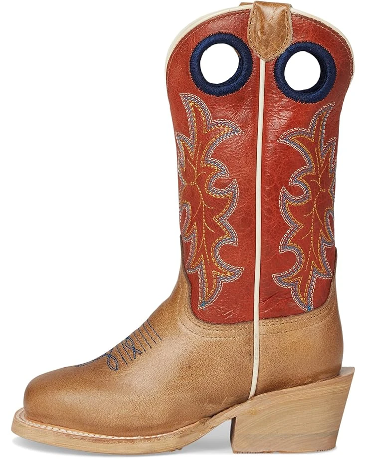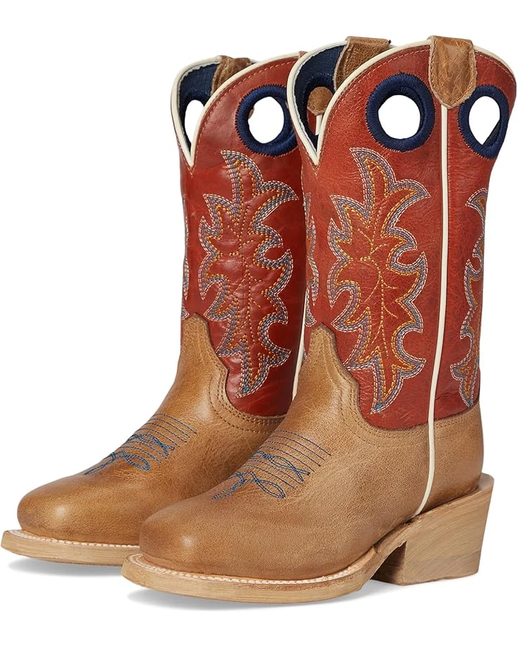 - The Roperยฎ Kids Ride ’em Cowboy boots are crafted with a leather upper that features a marbled leather shaft with pull holes. These heeled boots come with a rubber insole and leather lining. Let your kid catch everyone’s eye wearing these leather boots.