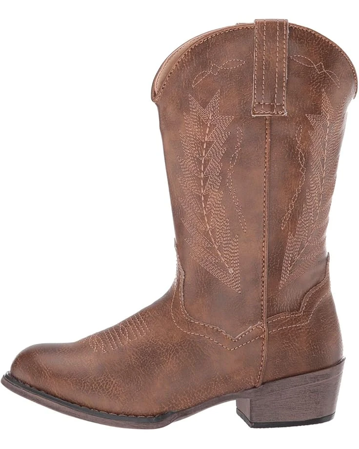 - Boot-scoot your way down the unbeaten path with modern appeal in the chic Roper® Kids Taylor. These slip-on western boots are designed in a distressed, faux-leather upper.